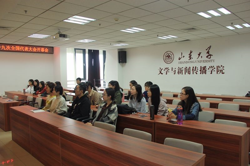 研究生党支部全体在校党员在知新楼A606收看了党的十九次全国代表大会。与会人员认真领悟会议精神,做下笔记,并拿出手机拍照记录。在学习过程中,党员们热烈讨论并发表感言,表示一定会奋发向上,把握时代主题,不忘初心跟党走,将知识与实践相结合,在激情奋斗中绽放自己的青春光芒。此外, 2015级新闻班也组织本科生在中心校区8号楼502寝室和433寝室齐聚,共同观看中国共产党十九次全国代表大会开幕会。同学们通过学习习近平总书记的报告,深刻认识了国家的重大方针和政策,更领悟到五年来经济社会发展给生活学习带来的便利。