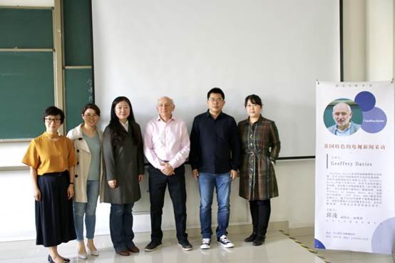 访问期间,Geoffrey Davies先生还为师生作了题为“英国特色的电视新闻采访”的讲座,讲座由副院长邱凌老师主持。讲座中Geoffrey Davies指出采访在电视新闻中的重要性,更强调新闻媒体是一种重要的社会力量,媒体记者有责任去提问、调查并报道相关事实,向公众展现他们真正关心的问题。随后,针对采访的不同地点,他具体介绍了演播室采访、街头采访以及网络采访三种采访形式并以“朝韩会晤”为例与现场同学进行了互动,探讨了专业记者“如何提问”。讲座中,Geoffrey Davies以大量生动详实的英国新闻案例给同学们阐释了电视新闻采访中应该把握的要点,从记者和主持人的专业素养到镜头的使用都给予了详细地解释。讲座生动有趣、气氛活跃,同学们受益匪浅。