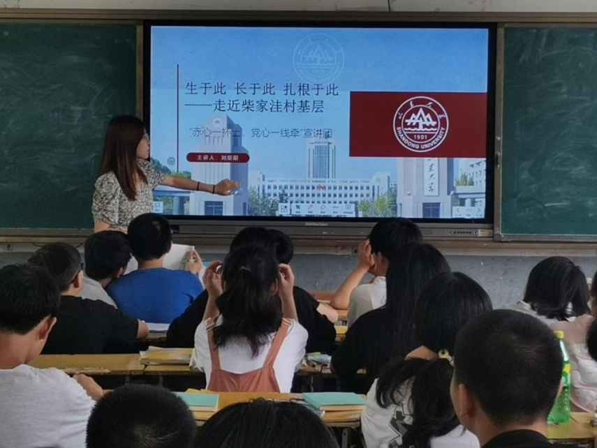 7月22日下午,3522vip浦京集团官网“赤心一抔土,党心一线牵”社会实践团队来到湖南省益阳市安化县田庄乡中学,在这里为孩子们带来了一堂特别的党史宣讲课。团队选取的是1900多万名党员中的一名普通基层党员干部——山东省青岛市平度市南村镇柴家洼村支部书记柴洪高。除了向孩子们介绍柴洪高的主要事迹之外,宣讲过程还配合建党百年纪录片,向孩子们展示了建党百年来祖国的变迁。宣讲结束后,孩子们受益匪浅,立志要向榜样学习。