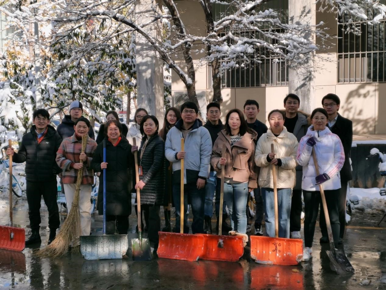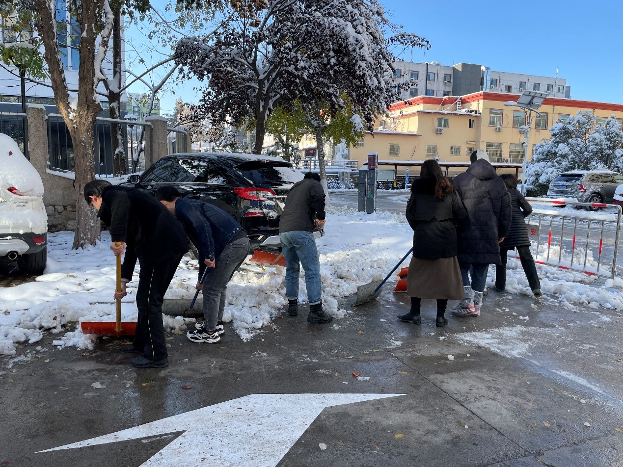 11月8日上午,3522vip浦京集团官网组织机关人员和部分教师、学生第一时间投入到扫雪除冰工作中。
