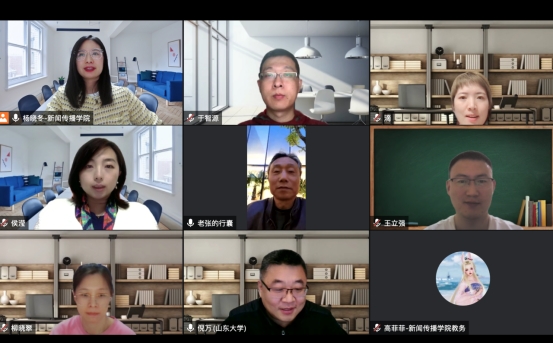 在交流环节中,新媒体系任课教师积极踊跃发言,互相交流线上教学的心得与遇到的困难,并重点围绕新媒体系实践课程多、线上授课难的难点问题进行了讨论。在发言环节,张立表示在授课过程中与学生的互动良好,但教学时也发现学生在宿舍时学习效果相对不佳的问题;倪万作为学院课程督导员和任课教师认为实践课程在线上开展过程中有一定困难,鼓励任课教师多以随机提问、随堂测试等技巧带动学生情绪;于智源在线上课程中增大了学生的作业评测和提问次数,通过这一方式有效了解学生学习情况,同时建议学生统一在教室内学习;柳晓翠为适应线上教学对个人授课方式进行了调整,尝试放慢语速、鼓励学生多回答问题等方式;吴迪目前采用全体学生打开摄像头的方式来营造课堂“氛围感”,鼓励任课教师使用腾讯会议自带的互相批注、留言板等功能增强师生互动;侯滢创新线上上课形式,学生通过微信群及时提问,课上解答学生问题,同时将会议录制的权限打开,方便学生后续回看课程录像;王立强将最新的舆情事件融入课堂,与学生们一起探讨最新的行业事件,鼓励学生踊跃发言,取得了较好的互动效果。