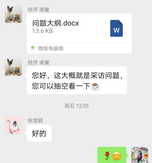 (团队成员发送采访问题大纲、确定采访时间)