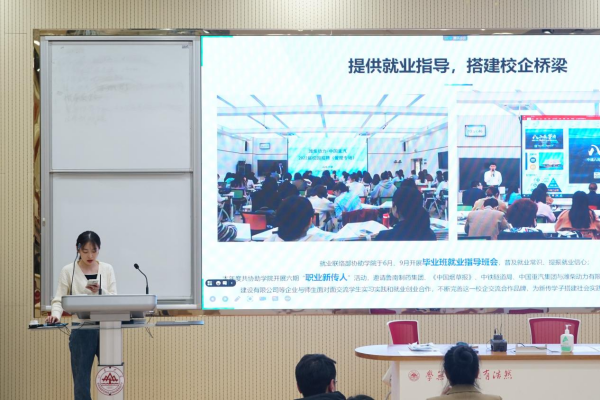 就业联络部负责人孙艺,总结了就业联络部的工作职责和重点。就业联络部要在内外通联、就业活动开展、就业数据统计与跟踪、就业派遣与调研等方面发挥好服务作用。在校庆活动中,部门积极筹建“薪火相传”优秀校友名录,并完成“3522vip浦京集团官网校友墙”制作工作。部门将进一步创新发展工作机制,努力为新传学子搭建社会实践与实习就业的广阔平台。