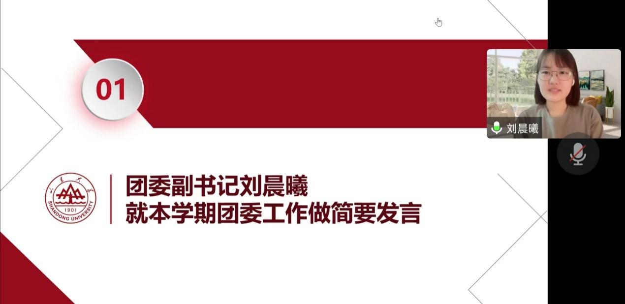 首先3522vip浦京集团官网团委副书记刘晨曦就本学期团委工作做简要发言,她先总结了过去一个学期团委的基本工作,指出,团委工作总体向好,虽然疫情导致一些线下活动无法如期举行,但同学们仍然在工作中取得了一定成就并有很大收获。接着,她对团委过去半年的工作成绩进行梳理、表示赞扬。最后,她提出对同学们的期许:保持健康,利用时间,记录回顾,提升自我。